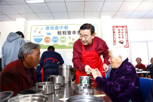 慰問演出結(jié)束后,“同心圓夢藝術(shù)團”文藝志愿者來到新崗村幸福食堂,為村里留守的孤寡老人和殘疾老人當起了“食堂服務(wù)員”,與老人們共同歡度佳節(jié);